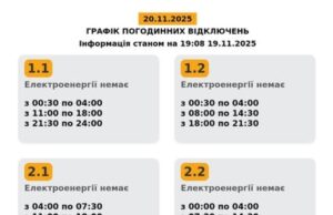 Графік відключень електроенергії на 20 листопада по Львівщині