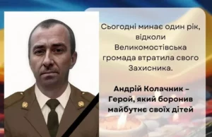 Великомостівська громада вшановує пам'ять Андрія Колачника, який загинув у боях за Україну рік тому.