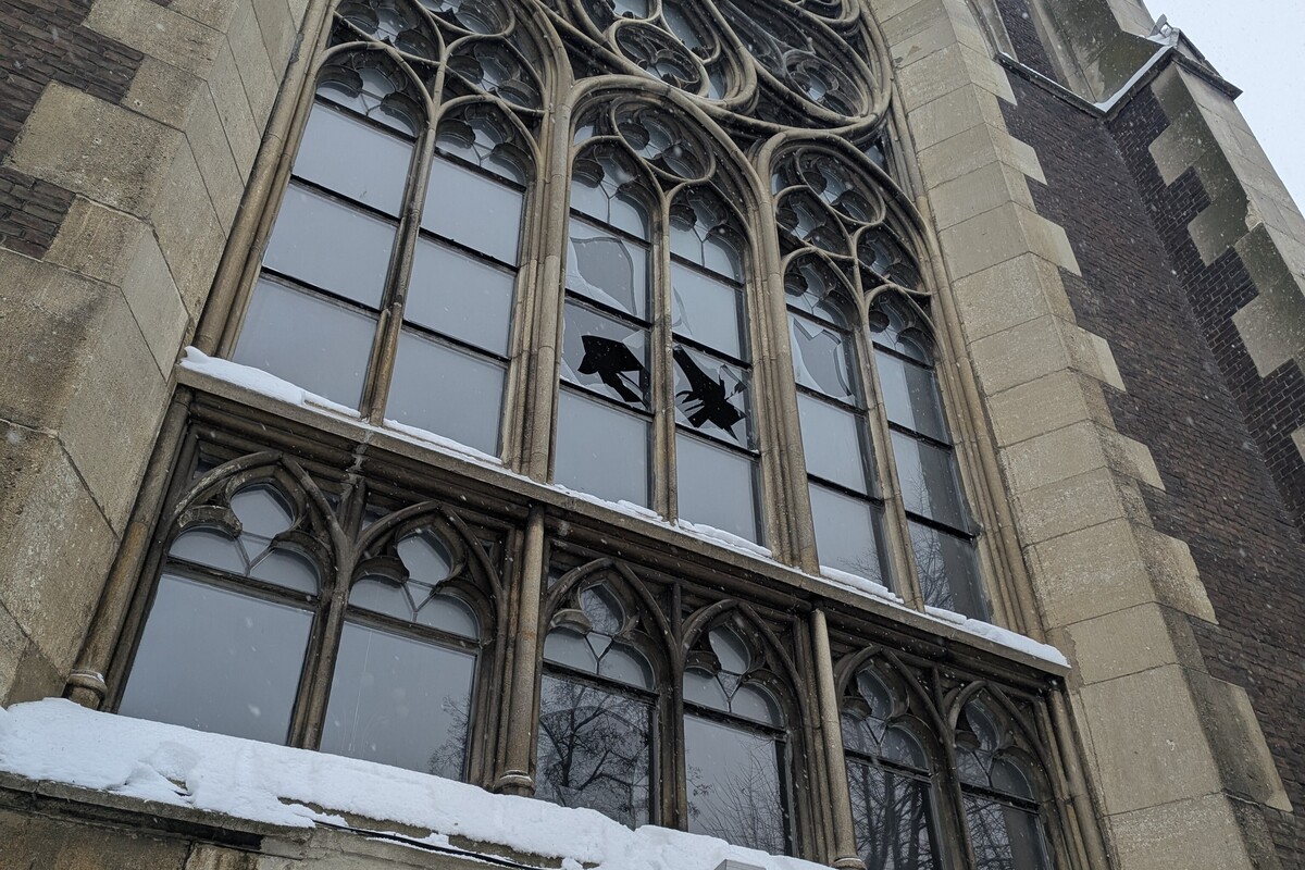 Зовнішня стіна храму святих Ольги та Єлизавети постраждала: кілька шибок розбиті, а у склі видно великі рвані отвори. Всього потрібно відновити 15 елементів вітражів площею 3 м².