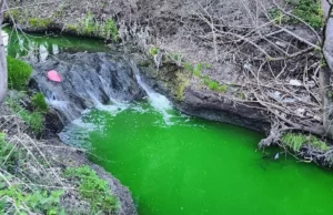 На річці Зубра виявлено яскраво-зелений колір води. Міські служби припускають, що це могло бути спричинено використанням барвника.